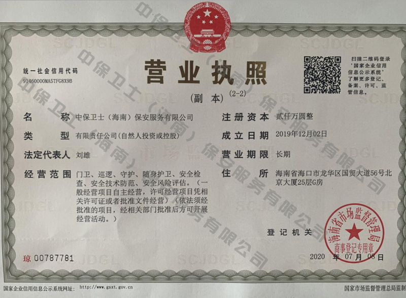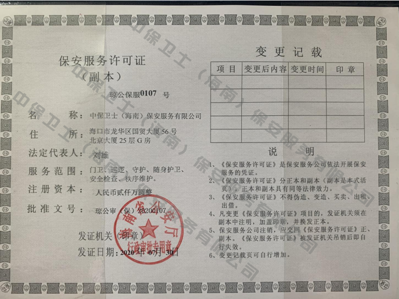 百盈官方网站-百盈(中国)是经海南省公安厅批准,依法持有《保安服务许可证》,提供保安服务、门卫、巡逻、守护、区域秩序维护、随身护卫、安全检查的专业化保安服务公司。